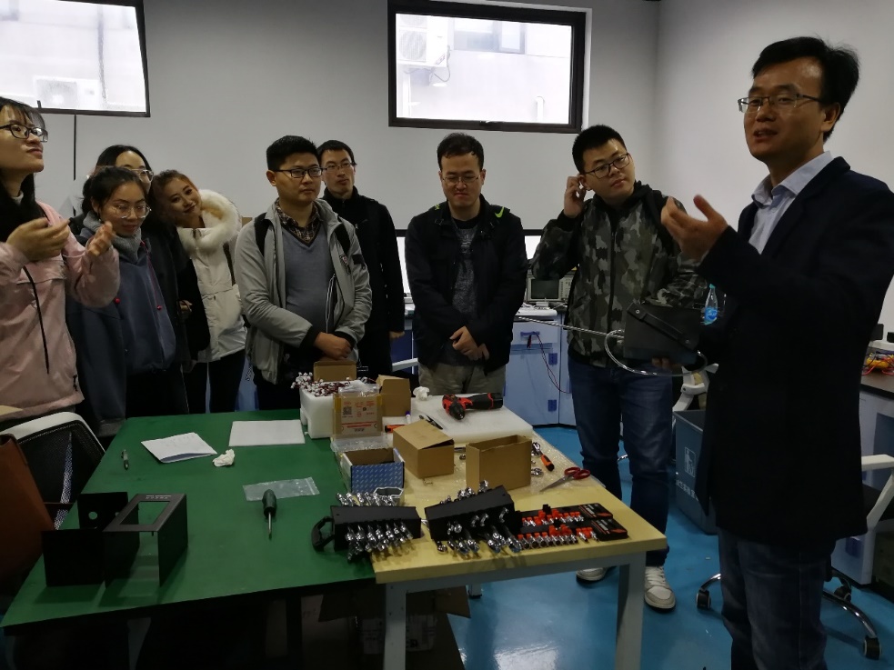 首先,支部成员在友兰公司尹博士的带领下,来到了光触媒产品研发实验室进行交流和学习。在这里,同学们了解到了光触媒净化器研发的基本原理和加工工艺,对于平日科研课题的研究对象有了更为深刻的理解。尹博士向员工们仔细介绍了每个部件设计和加工难点,并鼓励同学们珍惜在公司的学习机会,努力掌握科学文化知识,毕业后投身科学与先进制造业,为建设科技强国添砖加瓦。