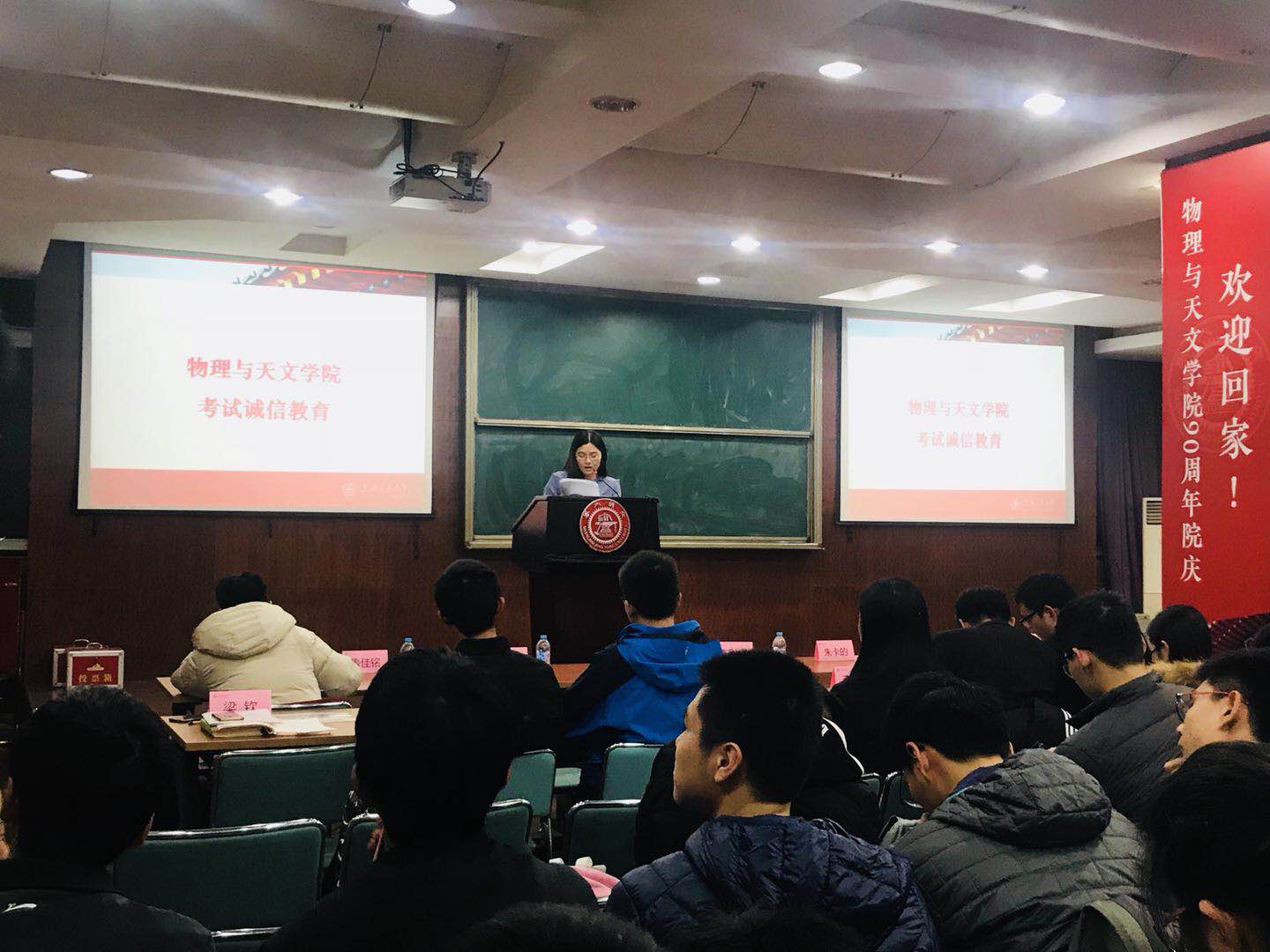 期末考试周,12月21日晚,Bevictor韦德在物理楼111开展考试诚信教育,Bevictor韦德思政教师梁钦以及全体本科生出席了此次大会。