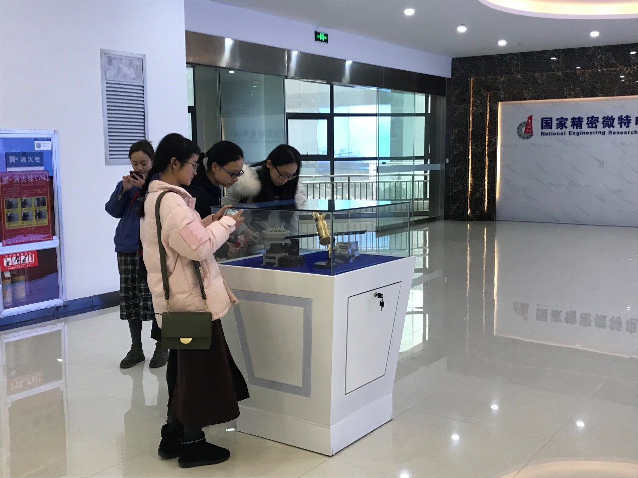 工程中心办公室主任唐杨带领同学们参观了展厅、车间和实验室。唐主任向我们介绍公司以“国家利益高于一切”为主的核心价值观和“心系国防、引领行业、共享成就”的企业使命,在微特电机、二次电源、伺服控制、遥测通信四个专业技术方面不断进取并获得了众多成效,在国防科技与民用电机上取得了众多技术突破。