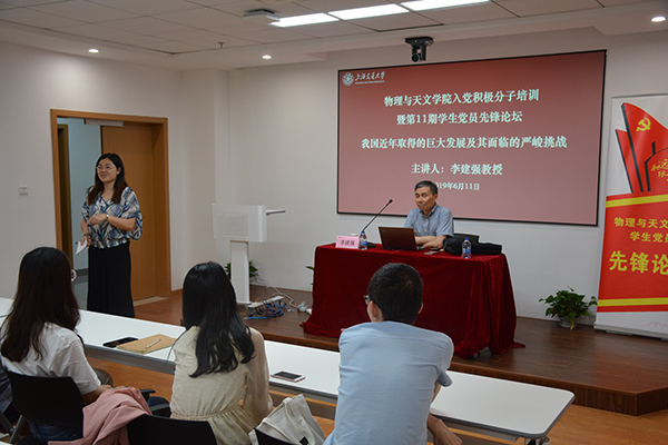 讲座中,李建强教授针对中国在近年来取得的巨大发展进行了详实而生动的阐述。他从同学们的切身感受出发,列举了我国在经济建设、全面深化改革、思想文化建设、全面从严治党、综合国力、国际地位这六个方面所取得的重大成就和经验教训。李建强强调,中国只要坚持改革开放、不断推进中国特色社会主义的建设,把握好发展与安全两个大局,必将在挑战中赢得新的希望和生机。他勉励同学们在思想和行动上不断向党组织靠拢,希望同学们能够勇担新时代赋予的历史使命,为早日实现伟大复兴中国梦而不懈努力。