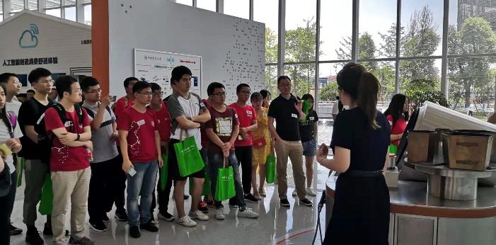7月9日下午,实践团来到了绵阳国家科技城创新中心二期创业园区参观。讲解员详细介绍了园区今年来在科技成果转化方面取得的丰硕成果,展区内大数据、物联网、电子信息技术、节能环保、智能家居等一大批先进科技产品让人大开眼界,老师和同学们赞不绝口。