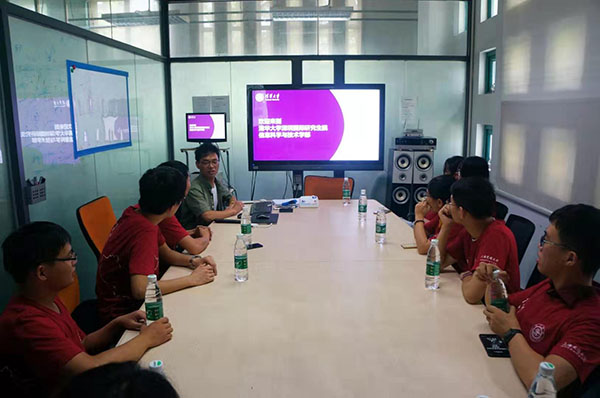 7月20日上午,在清华大学深圳研究生院信息学部党支部书记吴志勇老师的带领下,实践团前往清华大学深圳国际研究生院信息学部参观学习。吴老师着重从科学研究、校企合作、工程实践、科技竞赛和学术交流等角度介绍了该院在人才培养方面的成果和经验。该院在人才培养上着重将企业生产实践的问题引入科研,将高校科研的最新结果带向企业,促进产业、学术的深度交流与融合。实践团成员们与吴老师就人才培养和科技创新方面的问题展开了热烈的探讨。