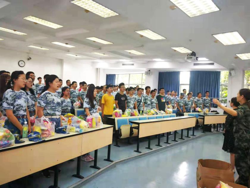 慰问活动在全体参训员工合唱《强军战歌》中拉开序幕,整齐又嘹亮的歌声体现了同学们在军训中的成长。2018级员工军训时间已经过半,物院全体员工及参训教师秉承“军政双训”的军训理念,全情投入,取得了优异的表现。为鼓励同学们在接下来的训练中再接再厉,慰问教师向参训员工们发放了丰富的慰问品。