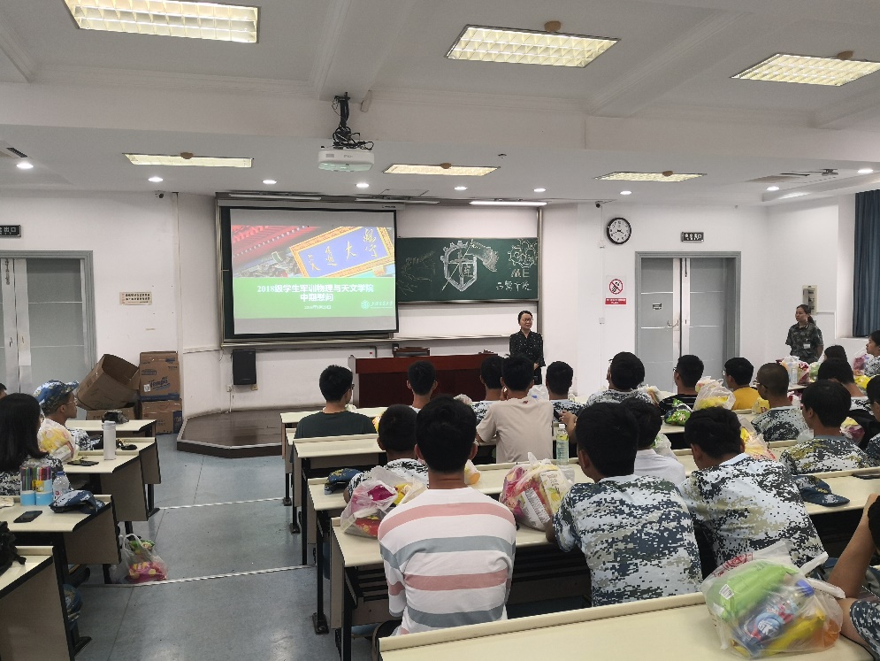 最后,院领导朱敏老师致辞,她代表公司向刻苦训练的同学们表达了关心与问候,肯定了同学们前半段时期的军训成果,并鼓励同学们继续努力。她表示,经过前半段的军训,同学们的精神面貌变得更加饱满,希望同学们能在接下来的训练中继续发扬物理学子的风采,度过一个难忘的军训。