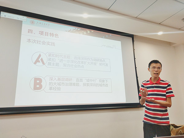 首先是研究生团队答辩。刘顺帆团队组成了“励志人生与基层锻炼成长”基层调研实践团,深入基层调研;胡佳元团队来到四川绵阳中科院物理所,开展以“献身国防,助力‘核’平”为主题的走访、学习;储兆林团队来到深圳,进行“风雨七十载,改革再出发”为主题的建国70周年赴深圳暑期社会实践。他们从实践背景、实践进程、实践感悟等几个方面展开了详细的介绍和展示。两位老师对各个团队进行了点评,并提出了改进意见。
