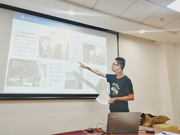 会议开始,分属党建、就业、通识三类实践项目的8个暑期社会实践团队的代表们依次上台展开答辩。