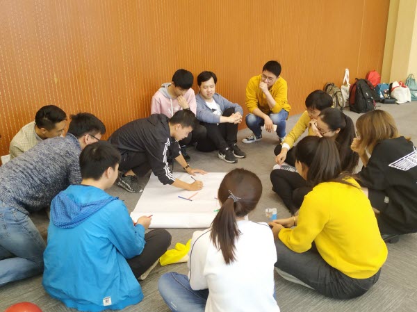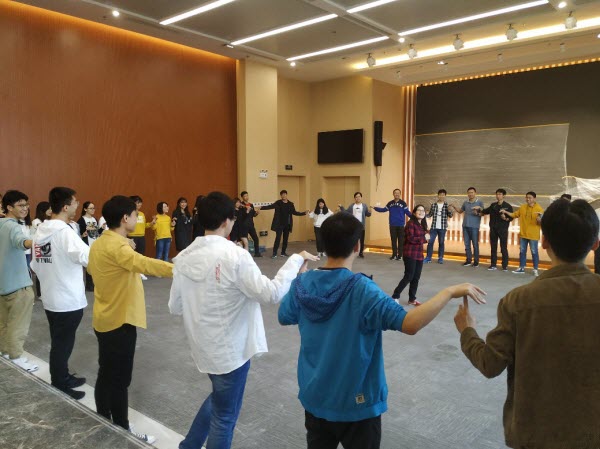 培训师首先带领大家进行了“听数抓手指”和“松鼠大树”的活动,借由同学们的互相配合迅速打破沉寂的氛围,完成了破冰。