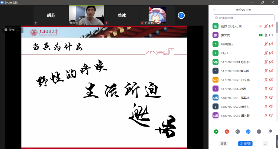 本次征兵宣讲活动线上实时参与人数达到110人,同学们参与十分积极也收获颇丰。希望通过本次活动,能够进一步激发同学们的爱国热情,点燃他们的军旅梦。