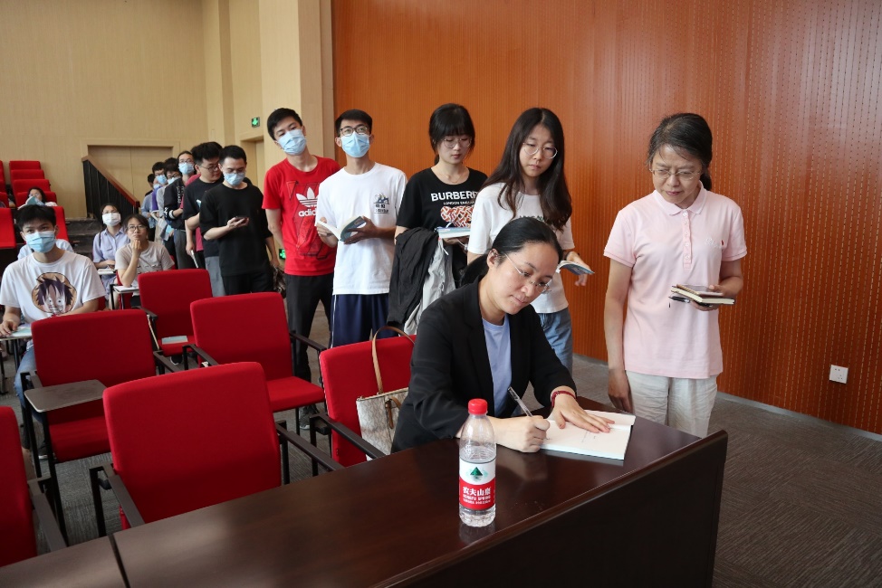 讲座之前,公司还准备了现场签名赠书环节。老师和同学们都非常积极,拿着《查医生援鄂日记》找查医生签名,排起了长队。