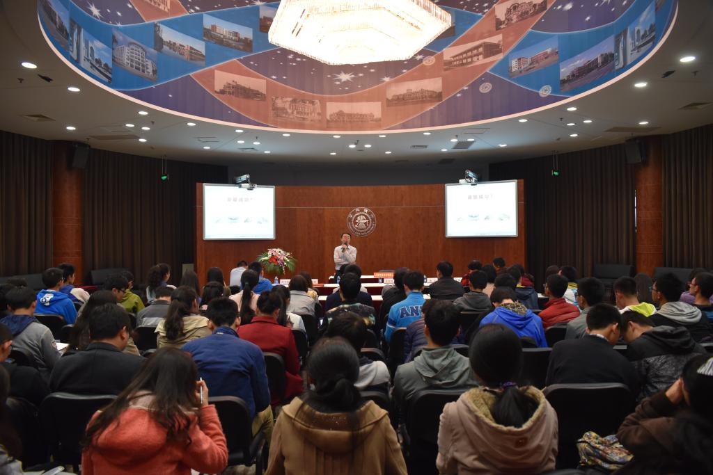 仪式后,戴剑飚做客“格物讲坛第一期——合作造就未来”。他从“和谁合作?”“什么是最好的沟通?”等问题谈起,用形象的例子为大家阐述了什么才是最好的合作。他说合作失败基本上都是没有找到自己合作的位置,而好的合作最重要的就是好的沟通。讲座中,戴剑飚深入浅出、幽默风趣的演讲风格给大家留下了深刻的印象,赢得了热烈的掌声。
