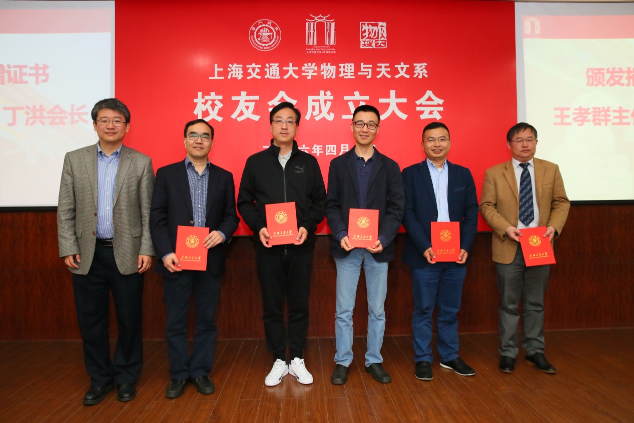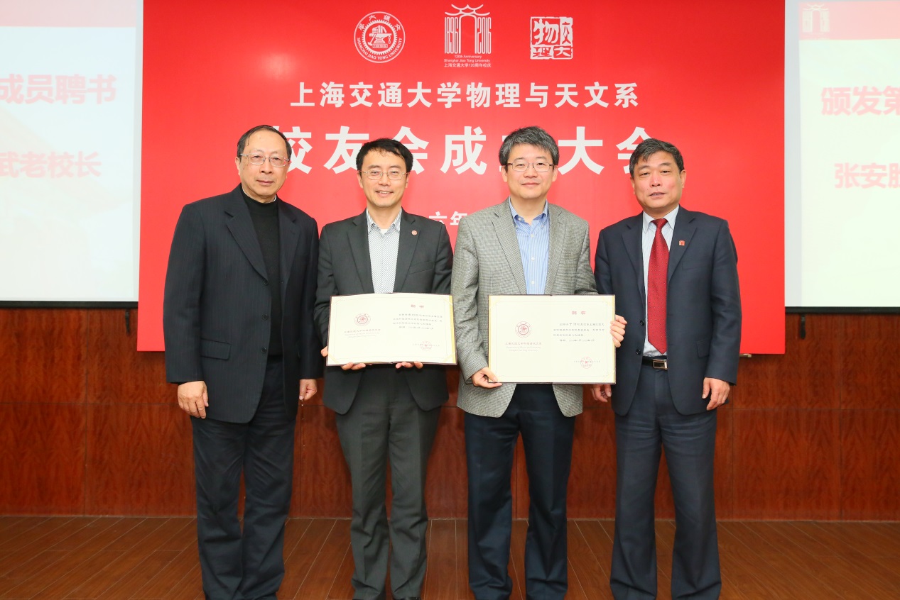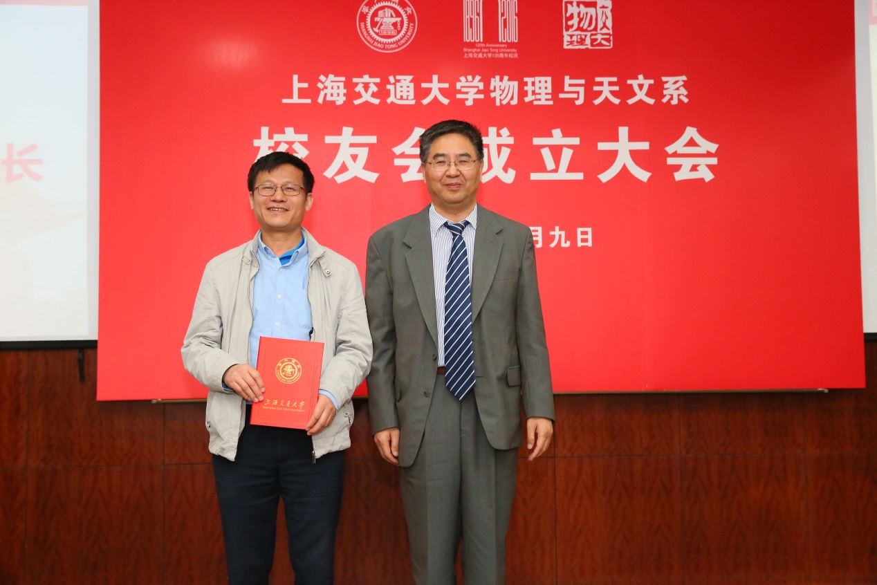 原公司党委副书记陶爱珠、新任员工会会长丁洪、物理与天文系系主任王孝群分别为校庆之际为物理与天文系发展出资的员工个人以及班级代表颁发捐赠证书。