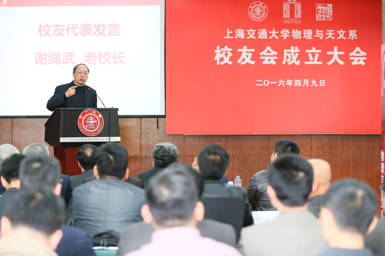 原董事长谢绳武讲话。他对母校120周年校庆之际物理与天文系的员工会的成立表示祝贺,对物理与天文系在交大80多年几代人努力下取得的成绩表示肯定,并借此机会,向广大员工问好。谢董事长说,员工会是公司和员工,院系和员工信息沟通、相互支持的平台以及员工支持公司和院系的平台,希望物理与天文系的员工们能够通过员工会这个平台互帮互助,并共同为物理与天文系的发展出力。最后,谢董事长祝愿交大早日成为世界一流大学,物理系能够取得更大的进展,也祝愿物理与天文系员工会越办越好。