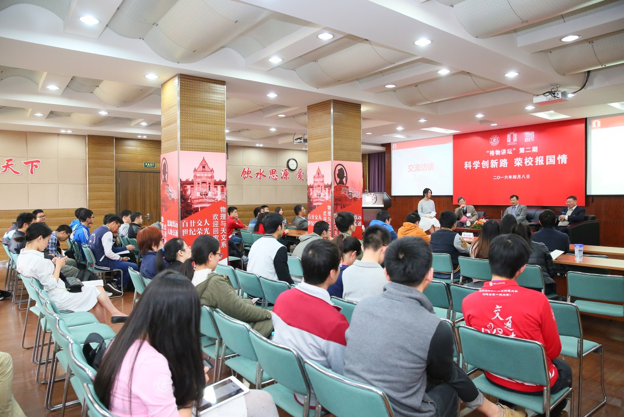 面对主持人的提问——“院士”这个荣誉,是肩头的责任还是身外之物?三位院士一致表示,这仅仅是一项荣誉,是对于现有成绩的肯定,却并非是将来科研的保证,甚至对于科学和社会的发展并不会有太大的影响。三位院士的回答,表现了物理学者的朴实与谦虚,展现了大家风范,令同学们感触良深。