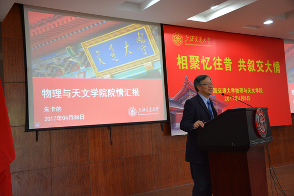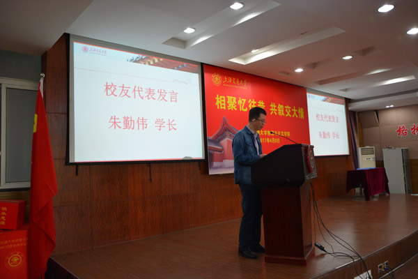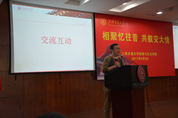 朱勤伟学长作为员工代表发言。他对母校如今发展倍感荣幸,感慨万千,作为八七级员工回忆在校生活,感谢物理公司培养了他严谨细致作风。他认为正是很多务实求真踏实工作的普通人,奠定了物理公司夯实发展的根基。朱学长热情洋溢的物理系取得成绩表示祝贺,同时感谢交大培养,感谢恩师公司包容理解,对交大及物理系发展表示衷心祝愿。