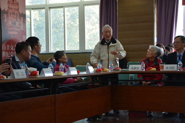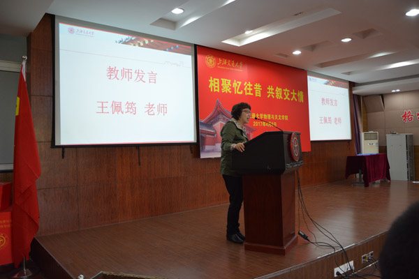 朱美华老师发言,她追忆往昔与交大同学深厚感情,对同学们取得成就表示欣慰,同时鼓励同学们克服险阻,多为党为民做贡献。